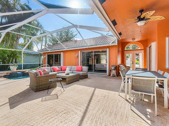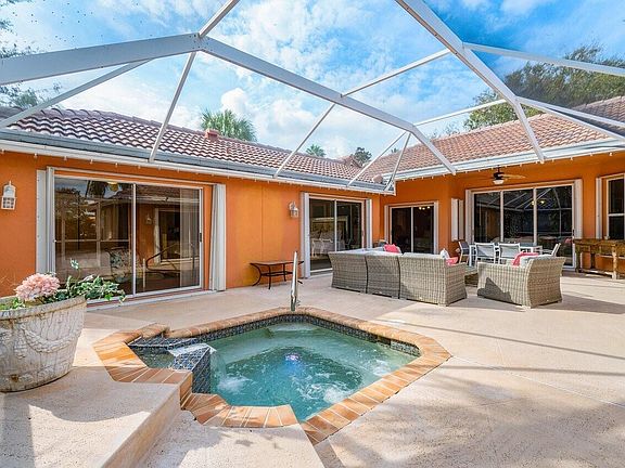 Immerse yourself in Florida living in this captivating 4-bedroom, 3.5-bathroom oasis. This rare gem boasts a private, screened-in courtyard, garnished with a rare 2 BEDROOM 1 FULL BATH GUEST suites, this home is perfect for al fresco dining and unwinding under the stars. Imagine balmy evenings spent soaking in the 6-person hot tub, recently resurfaced and boasting a brand-new heater, while gentle breezes waft through the screened enclosure.Step inside to discover a haven of comfort and modern convenience. With a brand-new roof and recent air conditioning system (just 2 years old!), enjoy peace of mind and energy efficiency. The home is adorned with numerous upgrades, adding a touch of personal flair and luxury to your everyday living. Unwind by the sparkling canal, your own slice of heaven. Your HOA covers cable, internet, landscaping, on-site security, access to 2 heated pools, hot tub, a clubhouse, 6 tennis courts & 2 pickleball courts, and a gym all for just $399 per month! Plus, enjoy the convenience of a bi-monthly Hulett Pest Control service. Quick access to FL's Turnpike, & I-95. International Polo grounds, Wellington Mall, Golf Courses, BMX, Parks, Biking and walking trails. Pet Friendly.