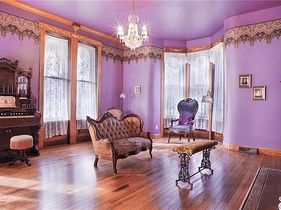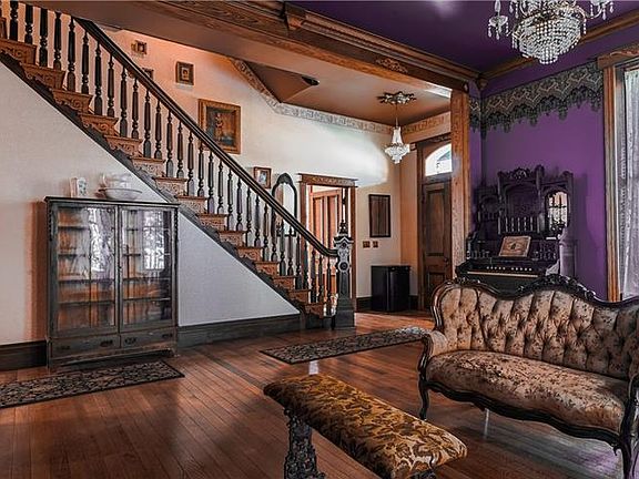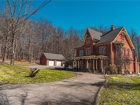 Presently resting on 5 partially-wooded acres with lush landscape and a gentle stream, this c1856 brick homeâs natural setting represents the romantic and picturesque movementâs quest for a healthier lifestyle and fresher air that the more country suburbs afforded. This Italianate Victorianâs display of artistic freedom is a feast for your eyes, from wide overhanging eaves with bracketed cornices, tall arched windows, and hood moldings to scroll-sawn brackets and beveled porch posts that frame the double door entry. A step inside reveals soaring ceilings, hardwood floors, and more lavish details, like a brilliantly-crafted black walnut staircase that cascades with elegance from the third floor. From opulent white marble fireplaces to black marble, and rich tiger oak to brick, 8 fireplaces lend a beautiful ambiance to the space they grace. The owner's suite will pamper you in the privacy of en-suite accommodations. Beautiful solarium, concrete paver terrace. Brick garage w/heated floor.