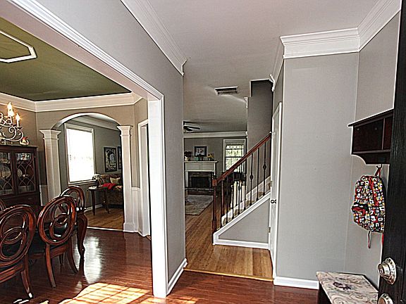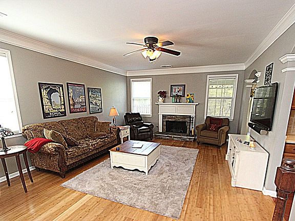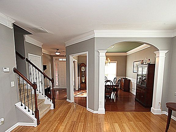 EXCELLENT CONDITION W/ DESIGNER PAINT AND NEW CARPET! Immerse yourself in the inviting open floor plan ~ Gourmet kitchen boasts Corian c'tops, b'fast bar, custom cabinetry, tile backsplash, b'nook & wall of windows. The Kitchen flows into the living/dining area graced by stacked stone fp, crown molding throughout & arched entry ways w/ regal columns. Grand Master suite w/ sitting area, trey ceiling & luxurious spa bath. Upstairs, you'll find a bedroom/play room with Bamboo floors. Screened porch displays slate tile floors which overlooks fenced private backyard.