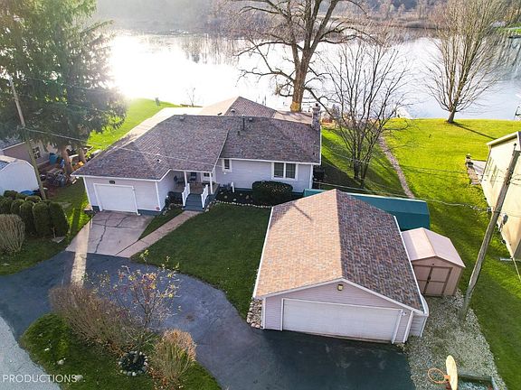 Welcome to your cozy Lakeside retreat! Nestled on the shores of Pine Lake, this 2-bedroom, 2-bath home offers 102 feet of Prime Lake Frontage in a secluded cove, mere steps from the water's edge. This meticulously landscaped property features a sanded picnic area, pier, and boat dock capable of accommodating 3 boats. The all-seasons room/great room is a sanctuary of comfort and light, with wall-to-wall windows providing panoramic views of Pine Lake's beauty. Recent upgrades, including a newer roof, windows, doors, furnace, A/C unit, and hot water tank, ensure a worry-free living experience. A 1-car attached garage, an additional 2-car detached garage, a storage shed, and a boat storage shelter provide versatile storage options for your vehicles, water toys, and gear. Whether you seek a peaceful lakeside escape or an adventure-filled waterfront experience, this Pine Lake property offers a perfect blend of both. Don't miss your chance to own a slice of paradise in this coveted location!