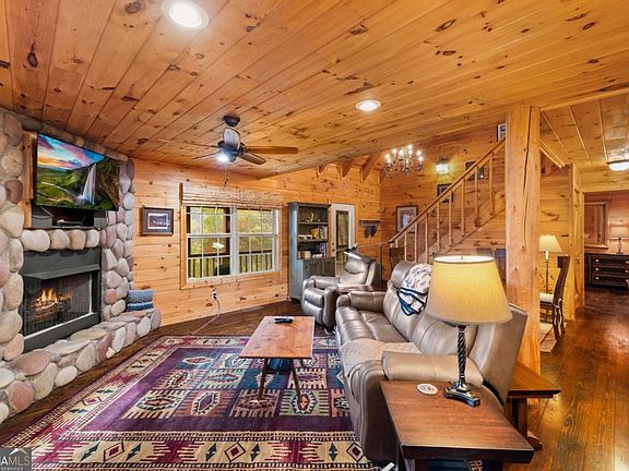 Escape to the heart of the Aska Adventure Area with this cozy 3-bedroom, 3-bathroom log cabin, where rustic charm meets modern comfort. Perched on a sprawling 3.34-acre private lot, this home is a mountain lover's dream. Imagine waking up to the soothing sounds of Stanley Creek rolling below and sipping your morning coffee on one of the expansive porches, each offering tranquil, short-range mountain views. Step inside, and you're greeted by the warmth of classic log cabin architecture paired with thoughtful updates. The living room boasts a river rock fireplace, perfect for cozy evenings by the fire. The updated kitchen blends style and functionality, making it a joy to prepare meals after a day of exploring. An expansive loft adds versatility to the space-ideal for a home office, playroom, or additional sleeping quarters. Conveniently located just 20 minutes from Downtown Blue Ridge, you'll enjoy easy access to shops, dining, and entertainment, all while feeling worlds away in your private retreat. Sold fully furnished, this property is ready to be your weekend getaway, full-time sanctuary, or a lucrative investment as a short-term rental. Whether you're drawn to the serene mountain lifestyle, the outdoor adventures right at your doorstep, or the opportunity to own a slice of Blue Ridge charm, this log cabin is a rare find. Don't miss your chance to make it yours!