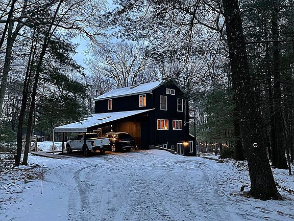Drive back from a quiet country road to find this perfect home bathed in light & surrounded by 4 acres of open woods bordering state land. It's got just the right balance of ample & cozy spaces carefully designed for heat & comfort; an open living plan with private bedrooms upstairs, and a great feeling of privacy in low tax Olive - yet it's 2 minutes from Rte 28, 10 mins to Woodstock & under two hours into the City. Enjoy the flowering bushes, raised garden beds & tall pines & oaks. To complete the picture, add a sky lit covered entryway, wood & tile floors, cathedral ceilings, lots of decking (including right off the kitchen), patios, closets and pantries galore, and a large radiant heated family room & half bath with an attached 4 season sun room/greenhouse. Other features include a workshop on the ground floor, great outside storage, a generator, buried electric and a Burnham Boiler. Make this your weekend retreat or full time home & enjoy the gently tended natural beauty of the property, the wildlife passing through, and the walks you will take at two nearby lakes. At night sit around the campfire in the back or with your tent set up on the platform near the play house/swing set. You might not want to leave home at all but if you do, the Woodstock/Phoenicia area & the Catskills that surround home are known for their abundant and varied cultural and recreational possibilities throughout the seasons. Enjoy!