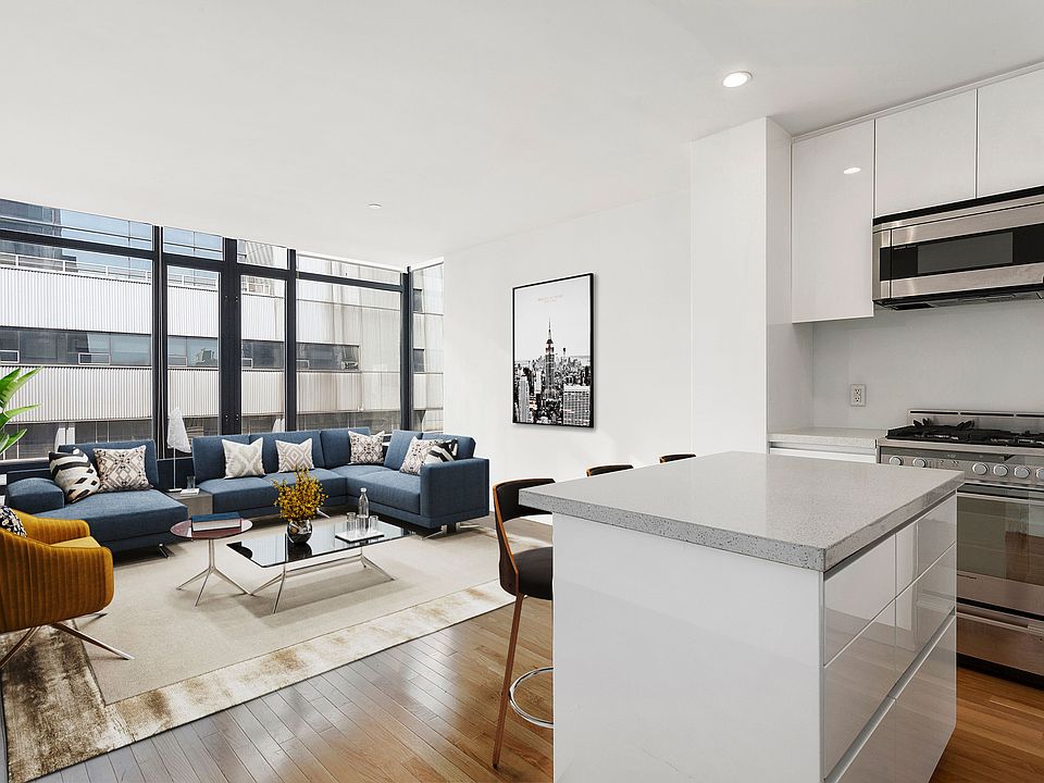 A bright and modern one-bedroom and one-bathroom apartment located at One48, a doorman condominium at the crossroads of Flatiron, Gramercy, and NoMad. The living room is flooded with light through the floor-to-ceiling windows and features gleaming hardwood floors. The renovated open kitchen boasts white lacquer cabinetry, white quartz countertops, glass backsplash, and stainless steel appliances. The bedroom has ample storage space and sliding frosted glass doors. This boutique condo has a full-time doorman, landscaped roof deck, gym, live-in super, state-of-the-art on-site automated parking, bike storage, and a laundry room. The building is located in close proximity to restaurants, shopping, parks, and all that this vibrant location has to offer. Tenant Fees: Changing Mailbox Tags Fee (Non-Refundable)$35.00 Application Fee (Non-Refundable)$700.00 Credit Check Fee (Non-Refundable) $20 per applicant Move-In Deposit (Refundable) $750.00 Processing Fee (Non-Refundable) $600.00 Digital Submission Fee $65.00 Security Deposit $4,400