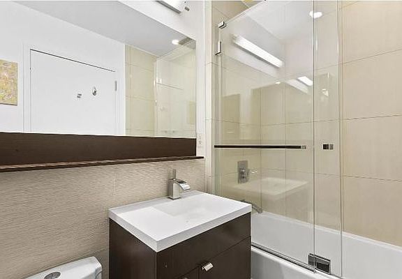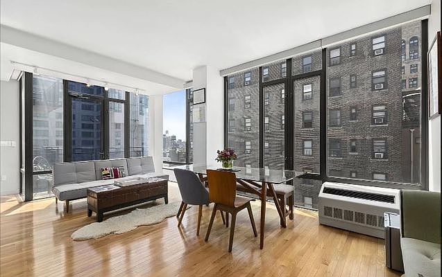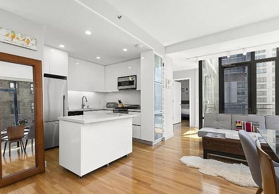This stunning open-design one bedroom, one bath condominium rental is available for occupancy beginning October 1, 2021. With 741 SF of open living space for a kitchen, living room, and dining area, floor-to-ceiling windows with corner views, and even a terrace, this home is truly a place to call home. Apartment features include two inch light brown oak floors, a chef's kitchen boasting large number of white lacquer cabinetry, designer stainless steel appliances, quartz counter tops with glass tile back splashes, and a movable island with drawers. The bathroom has a deep soaking tub, over-sized rain shower, low-profile glass shower doors, in-shower glass shelves, custom walnut vanity, and modern Vasser fixtures. The unit is very quiet as it faces inward from the street and only shares one wall with another unit. Additionally, the apartment has 4 closets, including an over-sized larger closet for the master bedroom, and all closets are fitted with custom-fitted racks, shelving, and drawers for space efficiency. The unit includes custom track lighting in the living room and dining area, individual ventilation units in each room and motorized shades, including blackout shades in the master bedroom. This luxury condominium has a 24 hour attended lobby that has been recently renovated, Super, parking, 24-hour gym, a large landscaped common roof terrace with grill, bike storage, laundry room, and additional storage is available. Sorry, pets are not permitted. Two year minimum lease term.