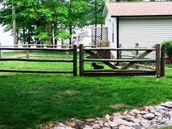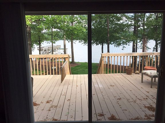 Wonderful waterfront home on flat lot with wide open view of wide Hubquarter Creek to main lake. Home has 3BR/2BA with living room, kitchen, dining area all with views of the lake. Open plan, granite counter tops, lots of new cabinets & stainless appliances. Large deck lakeside with gorgeous view. 2 story boathouse will hold up to a 26' boat and there is 7' of water depth at end of boathouse, steps down to water, plus slide into lake for the kids and a manual Jet Ski lift. New roof, gutters & 40 gal. water heater. Commercial quality heat pump. Low-E insulated, tilt-in windows. Automatic dog door from one bedroom to fenced in dog area. Low maintenance, beautiful landscaping. Detached 34' x 26' garage with 220 volt AC & 9' ceiling, 16' x 8' insulated garage door for full size van. 20' x 40' Concrete RV pad next to garage. This is a move-in ready home with everything you could need.