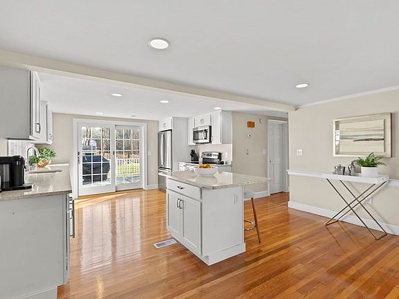 Welcome to this beautiful Cape-style home bursting with natural light, located in a coveted area of Kingston. A stunning new kitchen is the focal point of the home, perfect for those that enjoy entertaining with solid surface counters, SS appliances, under counter beverage cooler, island, eat-in dining area, & inset wood burning stove. The new french slider leads to an expansive new composite deck overlooking a beautifully maintained private backyard. The main level is completed with a gracious living room, bedroom & full bath. Keeping to the traditional Cape style, the 2nd floor has two generous size bedrooms including a double closet primary as well as full bath. For those needing additional space, this home has an inviting partially finished basement. Newer septic & updates in the last 24 months include refinished floors, heating and water heating system, A/C, rear and side siding, Azek PVC house trim, driveway & walkway. Bring in the new year in this turn key stunner