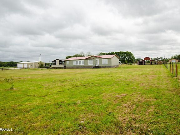 Looking for acreage? Well here it is! Double wide located on 6 acres of beautifully manicured property. Jim Olivier vinyl siding with warranty still in place. Brand new stove, fridge, dishwasher, cedar board siding for skirting. Brand new A/C Trane 4 ton with warranty, No carpet, Outdoor kitchen with fireplace, 2 24 x 30 metal buildings, large barn 24 x 30 with stalls, stocked pond with a deck, lighting, water wall to fill the pond. Whole 6 acres is fenced, also has pad to build your future dream home! Come see this beautiful property!