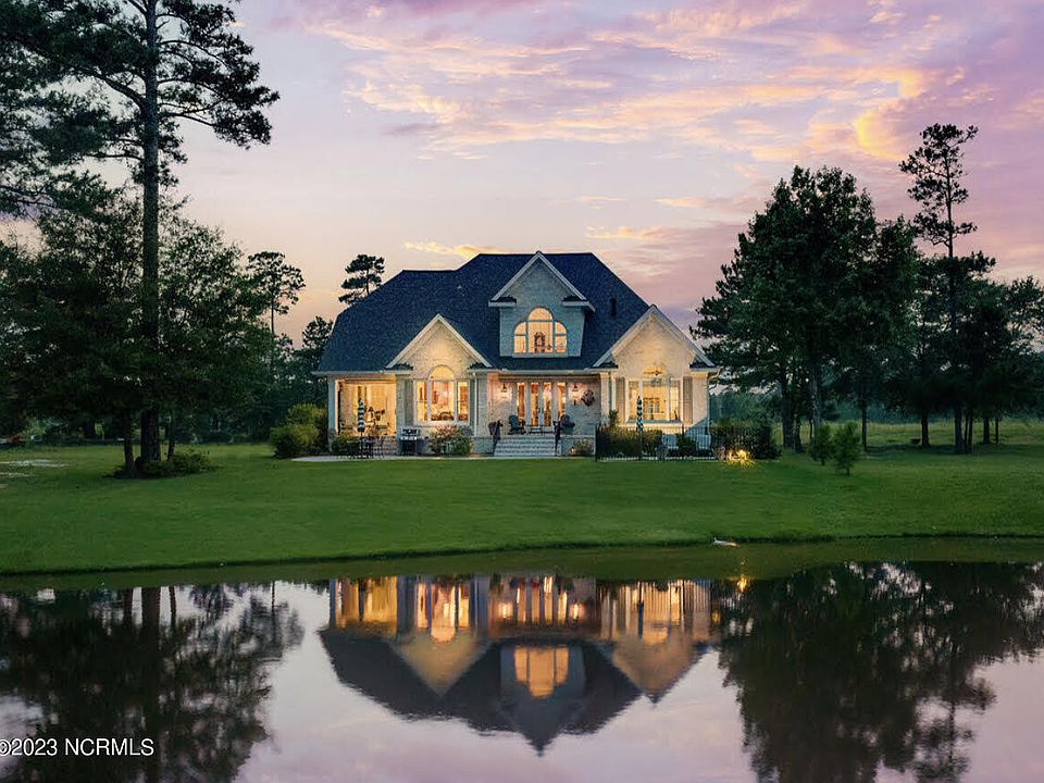 Custom built, young home, sellers spared no expense, plus sellers are offering special pricing on the adjacent lot. Indulge in the exquisite charm of this luxurious French Country home located in River Landing Golf Community. 148 Falls Landing Way offers breathtaking water views backed by serene landscaping and the 15th Fairway. As you enter the grand two-story foyer, you'll be greeted by a magnificent great room that features floor-to-ceiling windows, custom-built bookshelves, and an elegant marble fireplace. The great room flows seamlessly into the kitchen, where you'll find a large center island, sleek stainless-steel appliances, and stylish light fixtures. The breakfast nook and the private first-floor primary suite offer stunning views of a tranquil pond and an award-winning golf course. The primary suite also boasts a lavish master bath with a beautiful tile shower, dual shower heads, a soaking tub, sizable walk-in closet, and conventient laundry area. Upstairs, you'll find three additional bedrooms, a bathroom, and a motorized ceiling-mounted TV that can be easily flipped down with a touch of a button. The backyard is just as captivating as the interior, with its perfectly manicured lawn, lush flowerbeds, and a relaxing natural gas-heated cocktail pool. It also offers unobstructed views of a picturesque pond and one of River Landing's award-winning golf courses. This energy-efficient home is equipped with a cost-saving Geothermal system. The garage is every car enthusiast's dream, with its epoxy-painted floors, ample storage space for tools, and plenty of room for all your extras. Being part of a 24-hour gated community, you can access various amenities, including walking and biking trails, kayaking, basketball, fishing in stocked ponds, and a playground. Optional memberships available adding access to the clubhouse, restaurants, discounted golf, fitness center, and resort-style swimming pool.