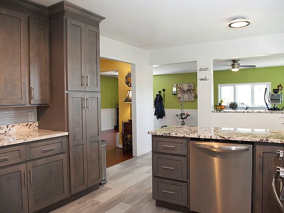 Totally renovated Ranch, situated on a mostly level large corner lot in a quiet neighborhood. Captivating hillside views can be appreciated from the expensive wrap-around, newly stained deck. Sought-after upgrades include a BRAND NEW kitchen with soft closing cabinetry, granite countertop, new appliances, new metal roof with ice breakers, windows, siding, gutters, hot water heater, new bathroom with a floating vanity, marble flooring, and jetted tub. Naturally lit full basement has been recently sealed. Low taxes for the area $6,022.