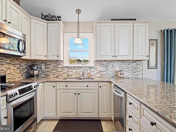 This beautiful contemporary open concept home is a bi-level with cathedral ceilings throughout and large, arched windows that make the house bright and spacious. Its stone front, lighting, and landscaping give it great curb appeal. It is located in a highly sought-after community in scenic Middlesex township in a quiet and friendly neighborhood which is part of the excellent Cumberland Valley School District. It has almost 2,000 square feet of finished living area with neutral colors throughout. It boasts a new kitchen with stainless steel appliances, quartz countertop, breakfast bar, soft closing light kitchen cabinets, new tilt in windows with warranty, new roof and recessed lighting. It has an oversized two-car garage with work bench and heavy-duty storage shelving. There is a new one car garage with loft used as storage space. It has a large lower level family room that may be used as an in-law suite or bedroom. There are ceiling fans in the three bedrooms and living room area. The kitchen, living room, family room, and two bedrooms are all cable ready. Front loading washer and dryer may convey. Built in 1992, it is on a 0.38-acre level lot with beautiful views of the Cumberland valley. There is public water and sewer and economical gas heat, central air conditioning, and a tankless water heater. It is convenient to Route 81, Route 11, and the Pennsylvania Turnpike and is adjacent to the Appalachian Trail.