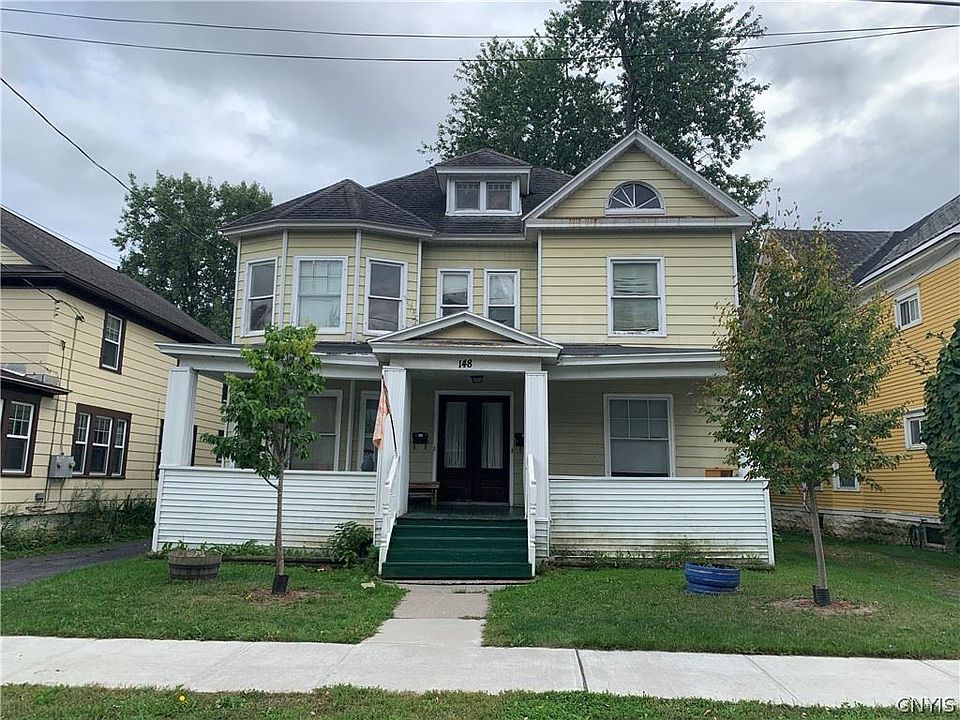 This home has original details and filled with charm. The side by side apartments have all utilities separated making it a great rental property. Live in one side and rent the other to offset your own costs or rent both. Apartment 1 has 1 and a 1/2 bathrooms while apartment 2 offers 1st floor laundry. Located very close to Samaritan and only a 15-20 minute drive to Fort Drum. Shared back yard is fenced.