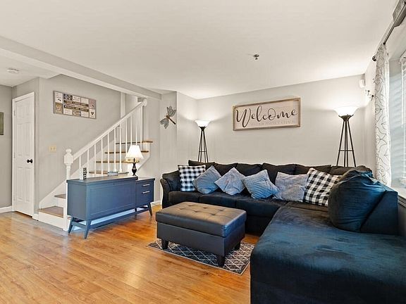 Seldom available, beautifully renovated 3 level end unit at Pilgrim Condominium, this unit is one of the largest in the complex. The current owners have renovated the home extensively during their ownership including new paint throughout, new flooring, new counters, and refurbished bathrooms. Literally nothing to do but move in. This is a very well managed complex which is pet friendly and very well maintained. The home has an open concept on the first floor with a living room, dining area, kitchen and 1/2 bath. The kitchen/dining area opens to a large deck with a private back yard, a common area porch is next to the unit, which is convenient for evening gatherings to enjoy the summer nights. The second floor has two large bedrooms with ample closest space, the primary has cathedral ceilings, 2 closets and a loft area that the current owners use as an office. The basement has a large media room, a combo laundry/3/4 bath, all recently remodeled. Welcome Home!!