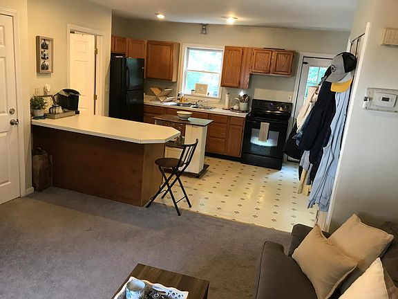 Available Oct 1. Sunny small SECOND floor 1BR suite, shares utilities w 3rd floor 1BR suite, inside a 2 story apt over barn garage. Garage is tucked in back, so feels very private. Well-behaved PETS considered! (Pls describe yours. Dogs are considered, but had to put "ok" in the ad). Open kitchen/LR area features bar w stools, and storage closet. Private deck off back! This is considered a roommate situation, since utilities are shared w the couple on 3rd floor. Kitchen can't have a range, but is allowed a hot plate n microwave, and is otherwise a full kitchen. Bathroom includes laundry machines! Large BR has two wardrobes in place of closets. Off street parking. This a bright place with a very open feel. Location is fantastic - right on the edge of Portland, walking distance to the Main St, as well as Kohl's n the new Market Basket shopping area being developed! Quick n easy access to 95. $1200 plus utilities. This is a smoke free, quiet n friendly building. Photos show the entire space. Tried to include all angles, so there's some overlap from one to another. Please include a phone number so I know it's not spam. I'll get in touch by e-mail. But if there's no phone #, I'll have to delete b/c I've gotten viruses in the past, so thanks in advance for including a phone #! :) -Suzanne We'll start with a lease thru May 31, with the option to renew for 1yr at that time. We do 1yr leases, from June 1 - May 31.