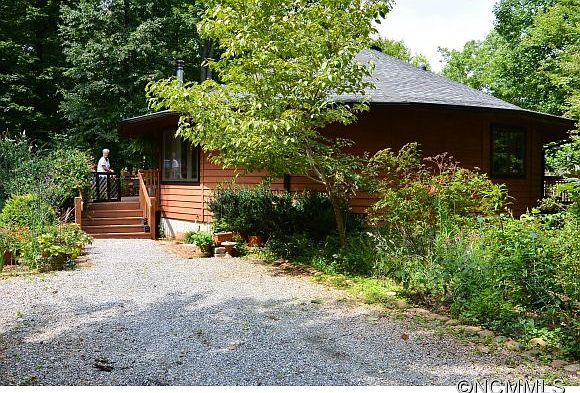 -Beautiful Deltec home, living in the round. A super year-round mountain retreat surrounded by trees and other established plantings. Open floorplan with private balcony off of the master bedroom. Wood burning stove (Yodel) with brickhearth & profile. Triple flue pipe w/stainlesssteel liner. Basement offers an opportunity for doubling living space finishing work that has already begun. Larger front entry porch.