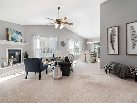 Open and airy three-bedroom, low maintenance, stand-alone condo in the Popular Legends plan. One floor living never felt so spacious! Freshly painted, this comfy home welcomes you with a vaulted Great Room with gas fireplace and opens to the Dining Room and the 3-season Sun Porch. The kitchen is mammoth and includes a passthrough to dining and a sun-filled breakfast nook. Enjoy your morning coffee with a vantage point that includes the back Trex deck, woods behind and a lovely Vista. The spacious kitchen also includes an island with space for additional seating, plenty of workspaces and, close access to the laundry room and attached two-car garage. The large Master is conveniently placed in the back of the home with an ensuite bath, double sinks and walk-in shower. Two additional bedrooms at the front of the home, one currently being used as an office with a beautiful bay window for loads of light! And additional full bath flanks these rooms. Pool, clubhouse, cart path to Country Club!