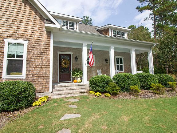 Words and photos do not do this home justice. You need to go see it for yourself. Truly a stunning custom built home in the beautiful, tranquil gated community of Grande Pines. This gem is a one of a kind, immaculate, well loved masterpiece built by Legacy Construction in 2013. Sitting on over 3 acres, the Eastern white cedar shake 4bedroom home has nearly 3400 sq ft and plenty of space to spread out. The oversized glass entry door is eye catching when you step up on to the welcoming front porch. As you walk in you will be amazed by the natural light that literally pours in through the back wall of custom french doors ! A gas fireplace is surrounded by gorgeous custom built ins which are just the beginning of the copious amounts of custom woodwork and trim through the house. Hardwoodflooring throughout, board and batten trim in the foyer, master bedroom and living room, wainscoting in bathrooms and office, tongue in groove ceilings in kitchen and dining area and decorative beams in the LR for example. The office has a custom desk and shelving. You will love the spacious feeling the 9 ft ceilings give you and perhaps love all of the vintage touches even more. An oversized vintage pedestal sink sits proudly in the half bath and the crystal chandelier in the master is stunning! Everyone will want to be the chef of the house when they see this dreamy kitchen! A large center island with butcher block counter is surrounded by stainless steel kitchenaid appliances, A Bertazzoni range and oven, Carrera marble counters, subway tile backsplash and a large farmhouse sink. The open shelving is a great addition! The main level owner's suite is generous in size with more custom french doors opening to the enormous back yard. There is plenty of room in the walk in closet. The master bath has a seemless glass enclosed, walk in shower with a Rain showerhead. Wide casement Pella windows throughout . Upstairs you will find 3 more bedrooms, two of which have built in seating/twin beds with storage. There is an additional flex room and a guest room with it's own bath. Even the laundry room is awesome in this place with a custom tiled dog wash and vintage trough sink! FIDO will be in heaven! The drop zone is the perfect place to keep jackets, shoes and that dog leash as you come in from outside. Speaking of OUTSIDE- despite how amazing this home is, you might find yourself spending hours and hours in the marvelous outdoor entertainment space. With over 3 acres of level land to explore, the lot is private with it's mature pines. The owners added some great uplighting to really light up it's beauty after dark. In addition to the expansive rear porch with the coziest porch swing you will even swing on, you will love entertaining by the outdoor firepit, the backyard kitchen with Lion gas grill, wood burning fireplace, and Boos Butcher block. The landscaping may bring out the green thumb in everyone with it's dogwood trees, crepe myrtles, japanese maples, english boxwoods, hydrangeas and holly. The irrigation system will help you keep it all healthy. The detached 2 car garage also has a covered car port behind it and a massive storage space above. You will find all of this and more at 148 Grande Pines Court. Located in West Pines School District, you are just an 8 minute drive to the Village of Pinehurst. Grande Pines has miles and miles of walking/equestrian trails, a community riding ring and cabin. flooring throughout, board and batten trim in the foyer, master bedroom and living room, wainscoting in bathrooms and office, tongue in groove ceilings in kitchen and dining area and decorative beams in the LR for example. The office has a custom desk and shelving. You will love the spacious feeling the 9 ft ceilings give you and perhaps love all of the vintage touches even more. An oversized vintage pedestal sink sits proudly in the half bath and the crystal chandelier in the master is stunning! Everyone will want to be the chef of