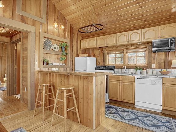 This beautiful one bedroom, one bathroom cabin is the perfect mountain retreat! Enjoy beautiful lake views from the deck and the open living room and kitchen. The master bedroom features a cozy wood stove and vaulted ceilings. This wonderful home features hardwood floors, spacious bathroom and laundry room. This cozy cabin is the perfect home away from home or primary residence.