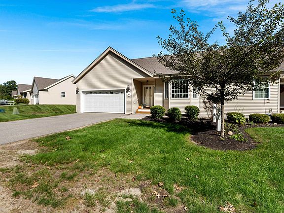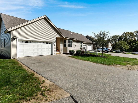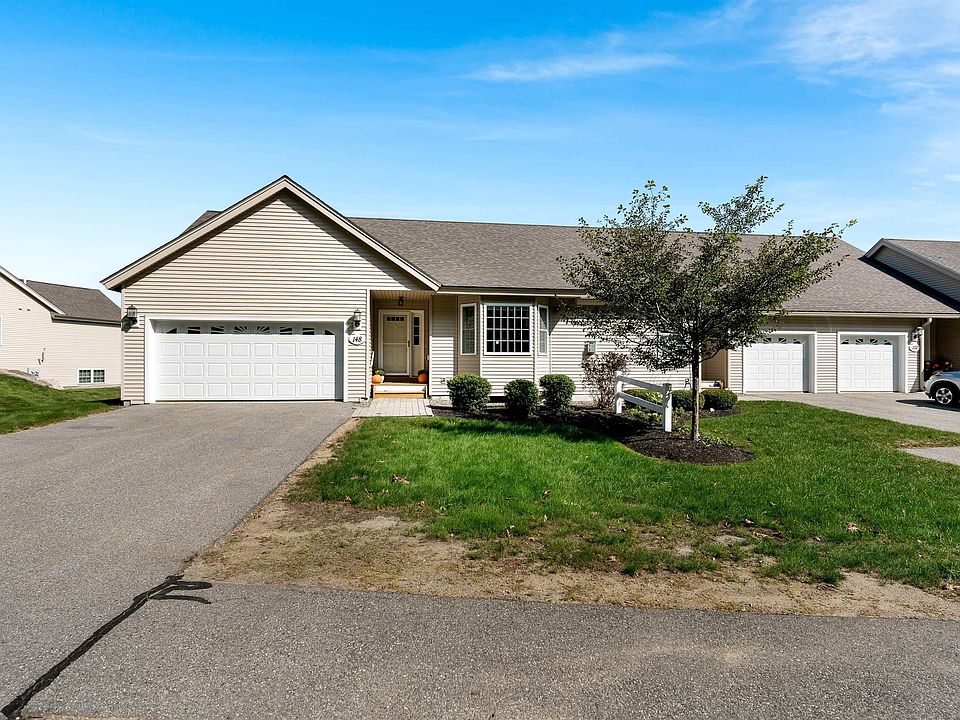Freshly painted throughout this stunning open floorpan layout!!! Welcome to Black Rocks Villages, a 55+ adult community conveniently located 3 miles from exit 5 on Rte 101 and less than 30 minutes from the Coast or the Queen City! As you enter the spacious foyer from either the front porch or directly from the 2 car attached garage equipped with a handicap ramp, you are welcomed with bright, natural light radiating from the kitchen's bay window. The aptly appointed kitchen with white appliances glisten in the sunshine. Enjoy formal dining at the kitchen table or hop up on barstools for a more relaxed eating experience. Cathedral ceilings enhance the open concept living room as you gather for a ballgame or enjoy the glow of the gas fireplace. Carry the entertainment outside through sliding doors to the large exterior deck. For the lucky homeowner, your primary ensuite is accessible through your own sliding doors from the deck. The first floor also has another bedroom with easy access to a full bathroom and a conveniently located washer & dryer closet in the hallway. A massive finished basement with a powder room awaits your enjoyment! Stairs accessing the back is a bonus! The unfinished basement's possibilities are endless!!! Black Rocks Village offers a Club House and RV Parking.