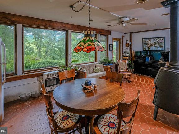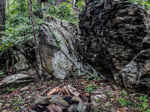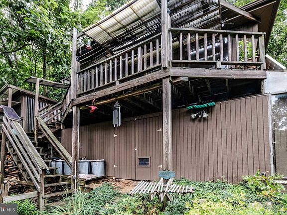 Another price drop-INSTANT EQUITY!Welcome to perhaps the most private and largest parcel(7+ view-filled acres) in all of Lake Front Royal, with a price tag you won't believe! This unique gem is filled with custom features cleverly crafted by the original artist owner who is happy to explain his ingenious special touches. The main portion of the home sprawls through the woods like a magnificent treehouse and consists of nearly 1,200 finished square feet with three bedrooms and 1.5 bathrooms. An additional greenhouse-like entrance, a ~man-cave/ping pong room~ in the rear of home (19x9), a ~sleeping porch~ just off the covered master deck (that formerly housed a hot tub) and enormous storage areas throughout make it feel spacious and measure much larger. Two detached buildings also add to the living area on the property~an artist's studio with huge view-filled window (15x15) and a workshop (20x18 complete with exhaust system to control dust)with similar mountain/tree filled views from its huge windows. Both have storage under the buildings, south facing windows, well-designed built-ins and gas heat. There's also an attached (12x5) garden shed (with electric and a hose bib area), an attached (24x4) built in storage room (that has a recycling area, wood storage section and dog access to an exterior fenced area) and a detached 16x8 storage shed (half open, half enclosed). Though the septic is rated for a two bedroom home, there are three bedrooms in the main house and the detached buildings provide extra living space.Perfect for a weekend getaway or full time residence, the home has an efficiently arranged kitchen (with gas stove, dishwasher, refrigerator, double sink and pantry under the stairs) and anopen living/dining area (with a $5k easy to clean Jotul stove w/ screen that heats the entire house). Located under 10 minutes from historic Downtown Front Royal with easy access to I-66 and I-81 for commuters, youwon't want to miss this opportunity!UNIQUE FEATURES NOT TO MISS:Custom locally crafted mural and stained glassLarge and remarkable rock formations throughout the propertyA fire pit area built around an enormous rock formation (below the detached buildings)Former trails throughout property could be re-cleared by hiking enthusiasts Zero grass to mow as the vegetation is natural (native plants and wildflowers are a haven for birds and wildlife)A lovely controllable ~pondless waterfall~ feature at the main entrance (with goldfish pond)Long eaves to protect windows from aging prematurelyA secluded cul-de-sac location that provides excess parking for guestsLighted railings to detached buildingsThe man cave/ping pong room in the rear of the property (with storage underneath and a roof updated approximately 2 years ago)BONUS FEATURES:Laundry shoot, recessed lighting, backup gas heater, ~top-down, bottom-up~ honeycomb Nextday Blinds, like-new hardwood floors upstairs, clever storage solutions, hammock hook in the MBR (currently a music room) ~sleeping porch, and Downstairs~ heat lamp and solar lights in bathroom, a compost area, Pella windows, gutter guardsLake Front Royal lake, picnic area and park accessNearby Appalachian Trail accessThe tree at the foot of the driveway marked with red will be removed by Rappahannock Electric Cooperative.PASSIVE SOLAR FEATURES:(in addition to 2 active solar panels that operate LED lights throughout the exterior and interior):South facing windows in the main home and buildings Terra cotta Terrazzo tile flooring throughout the main level (toasty in the winter months)Upstairs is double insulated and main home is insulated by the attached extra living space~s positioningInexpensive electric bills are well under $70 per month using wood as heat source (and sellers will leave 3 cords of wood)Excellent cross ventilation, ceiling fans appropriately positioned, and concrete walls w/ exterior insulation keeps the house cool in summer months and warm in winter months due to the passivesolar design