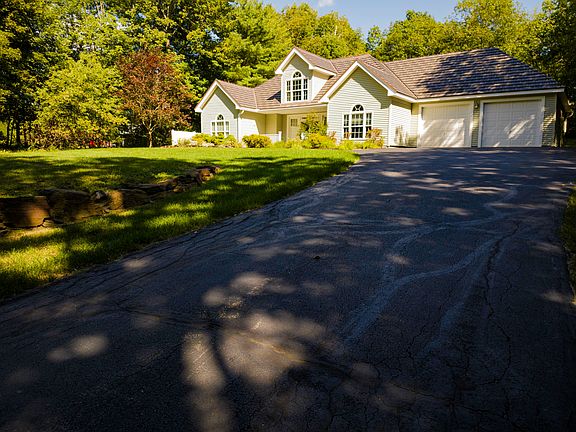 Meticulously kept home in private park like setting yet close to town. High cielings with crown molding, professionally painted with open concept design. Custom chef's kitchen with tremendous cabinet space, granite counters, gas range, pantry, and large island. Living room with cozy gas free standing fireplace, master bedroom with private bath boasting custom marble counter. Two additional bedrooms on the first floor with separate bath. Sunny den or study on the second floor. Attached heated two car garage with excellent built ins for storage and direct access to the tiled mudroom. State of the art metal roofing adds to the character of the home. Covered porch, private rear deck with fenced in yard plus elegantly landscaped. Paved drive, efficient radiant floor heating, heat pump cooling and so much more. Even two well designed storage sheds for gardening and lawn equipment.