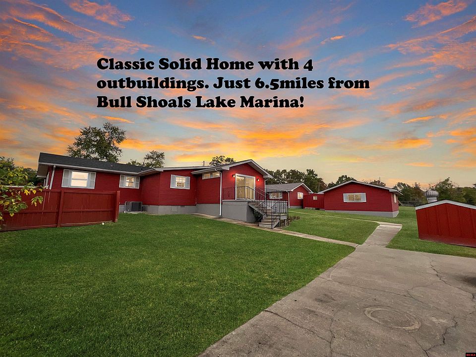 Quality Built with yester year charm. Much of home has hardwood floors under the carpet. 4th bedroom is "safe room" concrete bunker. Has 2 kitchens. Ideal for in-law quarters. Heritage II roof. Generator, 2 seperate detached garages. Fenced yard with electric gate. Joins other listing 127555 at 185 Hill Lane for multiple families in same location. 6 miles to Bull Shoals Marina. 2.2 miles from Flippin Wal Mart Supercenter.