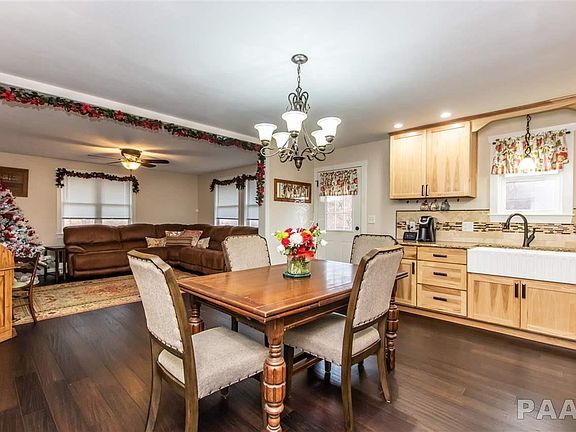 Come take a look at this completely updated ranch w/ convenient access to I74 and East Peoria! ALL new kitchen, w/ stunning hickory cabinetry, Quartz countertops and farm sink! SS appliances and beautifully selected flooring that flows into the spacious living room! Main floor bath has been updated and offers convenient access to the main floor laundry. Basement offers additional space for storage or to be finished! 2 stall attached garage and large yard. Come take a look today!