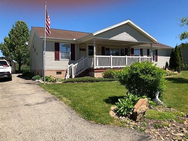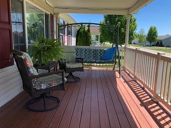 Located in quite a lovely 55 & over community - Whispering Pines! So convenient to town, shopping, medical facilities and the turnpike. Enter from a large front porch and you will find a pleasant living room w/gas fireplace, dining room, great kitchen, sitting room w/sliders to the deck. A split design has the master BR and Bath on one side and the other two bedrooms (or BR & Den) with main bath on the opposite side. Good storage, wrap-around porch, nice landscaping and a big one car garage. Fee includes water, sewer, trash, lawn, snow. 10x12 storage shed is also included.