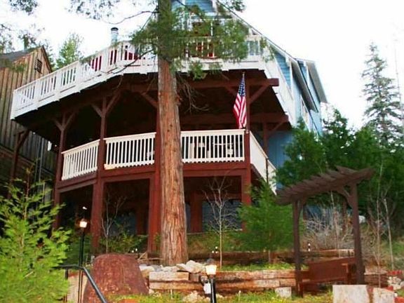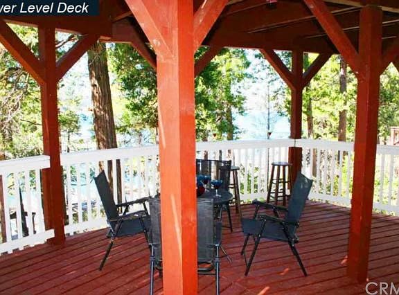 This beautiful level entry home is one of the most convenient lakefront properties in Lake Arrowhead. Everything you need is on the main level and the dock is directly behind the home, just steps away. The oversized, finished garage is long enough to store your boat. Enjoy the secluded forest atmosphere on the upper deck and the lakefront fun of the lower deck, just above the 40' stream and pond below. No need for a boat lift in Orchard Bay. The water is always calm and there is very rarely boat traffic, which makes for a very relaxing time and safe water play. The lower level has a separate entrance and can easily be converted to a 2 bedroom apartment or mother-in-law quarters. Great potential for vacation rental income.