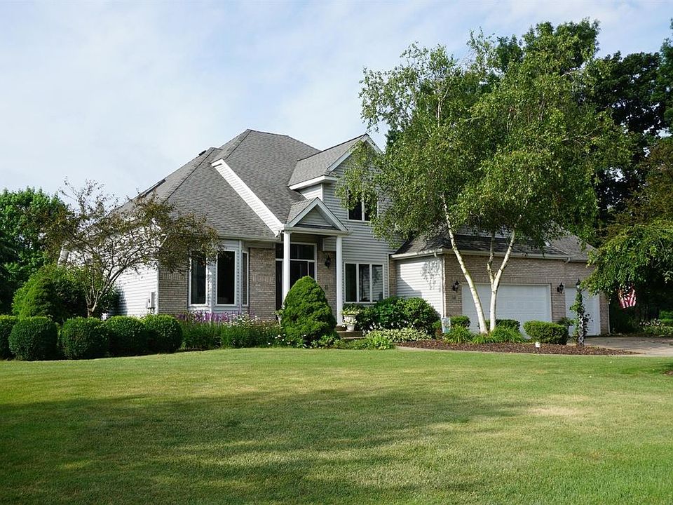 Wonderful pride of ownership throughout this custom-built, five bedroom 3 1/2 bath home featuring 3000 SQ FT of above grade living area, plus a beautifully finished daylight basement (adding approx. 1200 SQ FT of recreational living area).And,the additional 3-Season porch flowing to a spacious trex deck overlooks a private 1 1/4 acre setting with gorgeous landscape/ floral beds, and Koi Pond. Interior elements offer Main floor En-suite, open & roomy floor plan, elevated & vaulted ceilings, hardwood floors & trim, and attached 3-car garage. Has newer roof, mechanicals, appliances,counter tops, and water softener & RO.