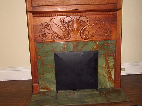 One of the nicest apartments in Heritage Hill NE. Very large living room with fireplace framed by carved dueling dragons, bathroom with shower and jacuzzi tub, kitchen with lots of cupboard space, dishwasher, microwave and ceramic floor. Off-street parking. Front and rear entrance with storage room inside outer door with access to basement. Dining room has antique inset ceramic tile and parquet floor. Newer high-efficiency furnace in insulated building.