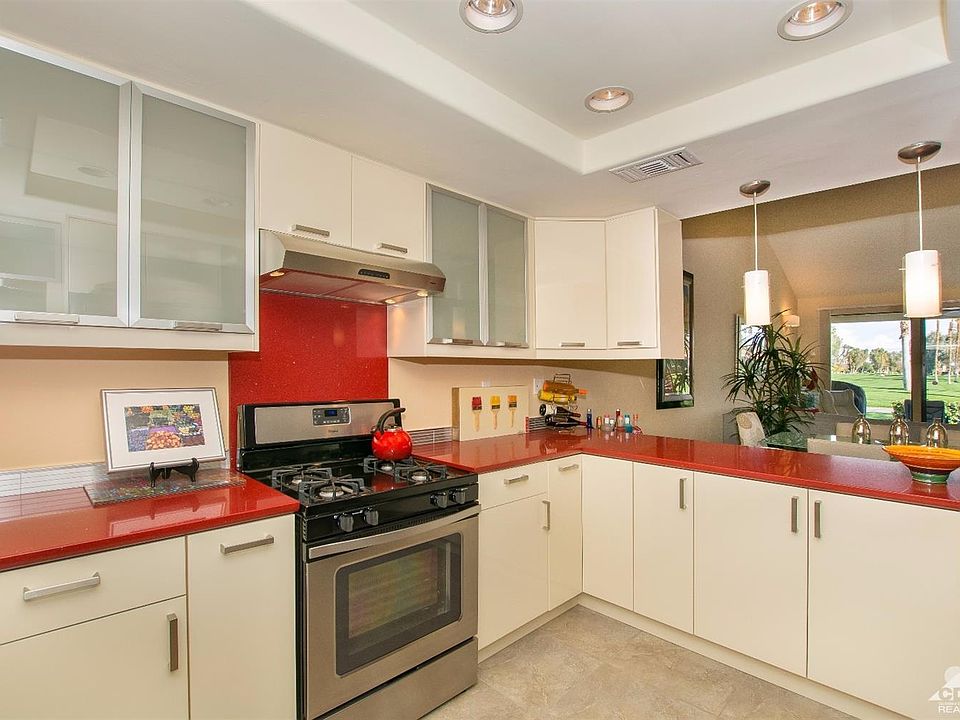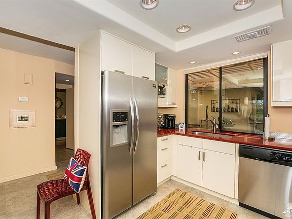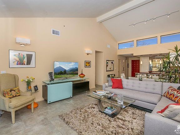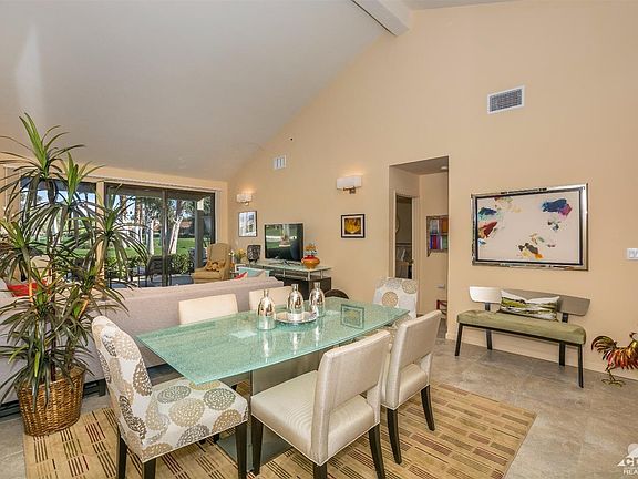 This extensively remodeled, highly upgraded and turnkey furnished golf course home in Monterey CC is ready and waiting for your arrival. The kitchen has been opened up, contains all new appliances, cabinets, lighting and quartz countertop. Tile flooring throughout. Both bathrooms have also been extensively remodeled from top to bottom. Master bathroom boasts a large walk-in shower. Second bathroom offers a brand new large tub with shower combination. This open floorplan has high ceilings & clearstory windows for plenty of natural sunlight. A private entry courtyard, lush with manicured vegetation, is perfect for outdoor dining/relaxing. The rear patio overlooks the golf course, lake and myriad of tall swaying palm trees. Monterey CC offers championship golf, tennis & pickleball courts, fitness center & clubhouse. Monterey CC is located just minutes to shopping on El Paseo, the Westfield Mall, Trader Joes, Wholefoods & other grocery stores & a variety of dining choices.