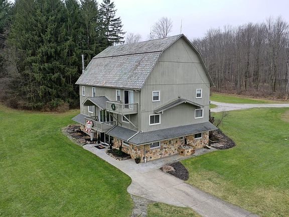 This beautifully converted & remodeled 19th century barn sits on 13.81 acres near Hinckley in the highly sought after Highland Schools district. The wooded property includes 2 homes-The first is 5 bedrooms 3.5 baths with 3 floors of living space and an additional walk up 4th floor available to renovate. Ground level features fantastic family room, bar, electric fireplace, half bath,/laundry room with washer and dryer & bonus room for storage or office space. Main level includes a living room with 2 story vaulted ceiling, dining room with wood burning stove, & fully applianced kitchen.The walk in pantry off the kitchen also has hook ups for optional 1st floor laundry. In addition to several decks and balconies on the home, youll have breathtaking views from every room! A hand crafted spiral staircase leads to the 3rd floor where you will enjoy the spacious master bedroom w/ large full bath with walk in closet & loft overlooking the 2nd floor. You can enjoy the outdoors with a large open meadow area plus a spring fed pond & pavilion with picnic area and firepit. Host extended family or make rental income with the BONUS 3 bedroom 1.5 bath farmhouse at the front of the property. Theres also plenty of space for activities, hobbies and car enthusiasts in the 35 x 50 heated pole barn and separate detached garage.FREE gas for all buildings, home warranty on both homes. Huge potential for horse farm or family compound.So many jaw dropping details, you need to see it to believe it!