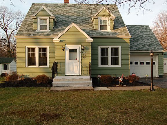 (NEW PRICE) Great location. This 4-bedroom/2-bath home with a scenic view of Canadaway Creek (great fishing) shows pride in ownership and attention to detail throughout. It's located in a quiet neighborhood on 1.1 acres and features newer kitchen & new counter top w/snack bar and heated ceramic tile floor; formal dining room w/heated ceramic tile floor; large living room w/gas fire place; main floor office/bedroom; master bedroom w/double closets; new bath on main floor w/double sinks, tile shower, heated ceramic tile floor, pocket door; new vinyl windows; beautiful hardwood floors throughout; full walk-up attic; state-of-the-art boiler and tankless hot water; new pex plumbing; attached one-car garage double deep and one-car detached garage; full dry basement could be more living space; move in ready. Call soon.