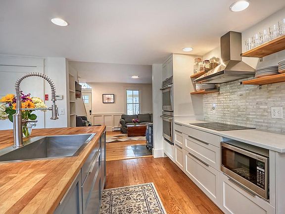 Quintessential updated colonial farmhouse in a uniquely perfect location! Steps from Lincoln's commuter rail and village center, yet tucked away on private lane, this hidden gem makes for efficient and effortless living. Deep and thorough renovations since 2015 include creating a top-of-the-line kitchen, a mudroom with a half-bath, and a new side entrance opening to a new porch. From the new boiler and hot water heater up to the new roof and everything in between -- all new windows, all new trim, full insulation, trex decking on the new wrap-around porch -- designed for low maintenance and energy efficiency. Customized cabinets and built-ins maximize useful spaces, with hidden drawers and plenty of storage. Details like the high-efficiency soapstone woodstove and fully open floor-plan up the charm and modern vibe. The expansive yard includes mature flowering bushes, lawn, and wooded area (and seasoned cordwood for next year). Walk to schools, trails, cafe, farms & so much more!