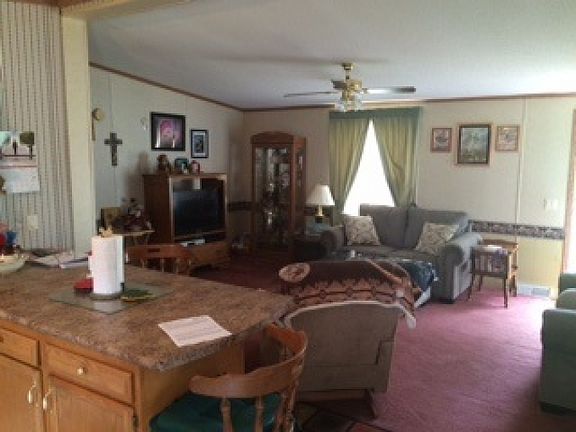 Three bedroom two bath mobile on 2.5 acres m/l. 1456 square ft. Brand new metal roof just put on, the central air unit was put in new two years ago, updated countertops, 12x16 storage building, all this setting on a nice level acreage just minutes from town on a quite dead end road.