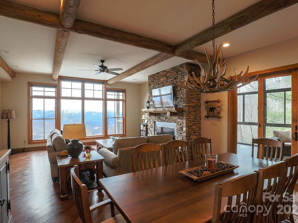 Enjoy amazing, long-range mountain and valley views and outstanding sunsets from this beautiful, 3BR/3BA lower-level villa with LOTS of updates in the premier Logging Horse community. The great room features a large stone fireplace, new wood floors, & heavy log beams overhead. Chef's kitchen has Viking appliances, granite countertops, large new kitchen island, and updated cabinets. Step out of your kitchen into a charming private courtyard, great for patio gardening and entertaining. The dining area opens onto a glassed-in porch with another stone fireplace w/gas logs, & a covered open deck for enjoying mountain views and cool summer temps. Primary BR has a private deck, en suite bath, & walk-in closet. Two guest rooms, one with en suite bath; both BR's open to the private courtyard. Guest hall bath & laundry room. Condo is all one floor. One-car garage and a golf cart garage. Close to club amenities, available with membership. Seller has a social membership, which is negotiable.