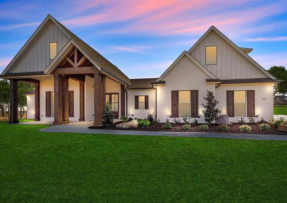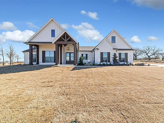 Come see this gorgeous 4 bedroom 3 full bath custom home on over 1 acre just a short drive from the DFW Metroplex!! The front entryway boasts 12-inch stained solid cedar posts complimented with shutters and an all-white exterior. Inside has a full gourmet kitchen with island, open concept living with vaulted ceilings, and hardwoods in the living room, kitchen, and hallways. The master suite is large with a large walk-in shower, separate tub, and a giant custom closet. Builder is offering $5,000 towards closing for a limited time only!