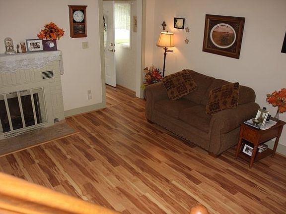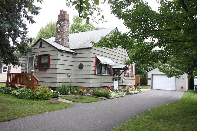 Cute! One and a half story home featuring a larger living room with brick gas fireplace, bright and cheery kitchen/dining area. Other features include a rear yard facing deck, a front entry deck, backyard concrete patio, and a 1 car garage with extra storage and work area. There are flowering perennials galore to the side of the home and a semi fenced backyard with alley access. The bathroom has been very nicely updated and features a corner glass shower.
