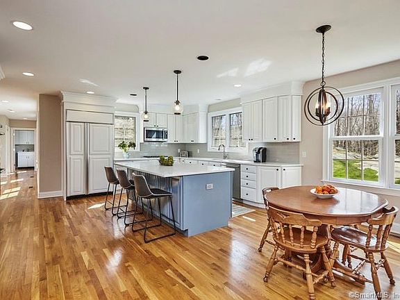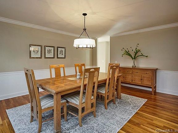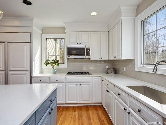 This timeless home enjoys a fresh new look by talented and local designer Heather McWilliam. Highlights include light and bright white kitchen cabinets, everyone's favorite white quartz counter tops and elongated modern ceramic subway tile back splash, with calming but warm neutral paint color palette. Classic banisters with a high gloss finish that pop. Carefully curated lighting fixtures with a mixture of bronze brass, and chrome provide a warm glow through out the house. There is plenty of room for everyone to live, work, sleep, play, swim and exercise without getting in each others way, yet the rooms are comfortable and inviting. The bonus room with kitchenette, adjoining bedroom and full bathroom offers endless opportunities for multi-generational living or au pair. Spend summer days and sunset evenings enjoying the pool, fire pit and barbeque with family and friends. There is plenty of space for playing frisbee, basketball and soccer games in the garden with ample parking in the driveway. An additional 1,250 sq feet in finished lower level offers space for movie viewing, recreation, billiards and a personal gym area with full height mirrors. This turn key home has a bucolic setting and mature landscape. It is quiet and private, and only minutes to schools, trains, Wilton YMCA, stores and restaurants. A tremendous value.