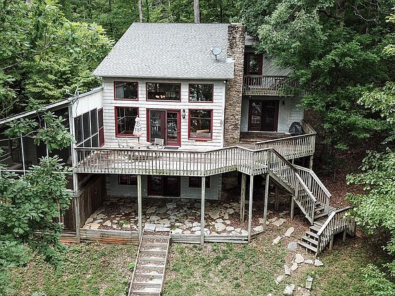 NORRIS LAKE HOME! Beautiful custom built home on a gentle lakefront lot! This home was thoughtfully designed with lake living in mind. Features include Oak Hardwood flooring, handcut shiplap walls, tongue and groove ceilings, stainless appliances, leathered granite in kitchen, custom rustic cabinets, massive stone fireplace, walls of windows for viewing the lake, soaring cathedral ceilings with balcony, Great room dining combination area with a sunken living room leading out to a fabulous screened porch. Huge basement that walks out to backyard and lakefront. Lots of extra storage! On demand hotwater. Ample fixed and floating dock space for all your guests. You even have your own boat ramp to the water. Gazebo on the dock. Good water just off main channel! Close to Norris, I75, Knoxville!