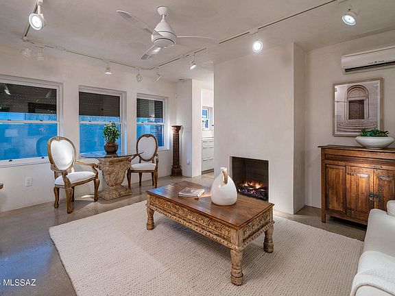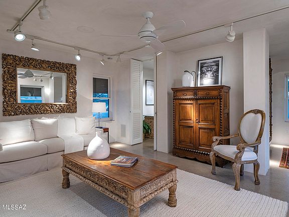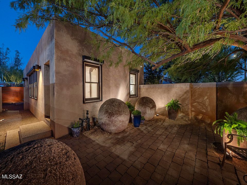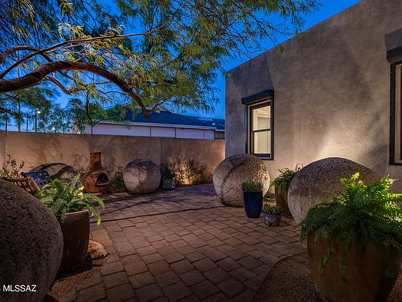 A pure expression of regional vernacular juxtaposed against minimalist modern lines creates the perfect blend of form and function. Seamlessly integrated within the existing fabric of the neighborhood, and within walking distance of the University of Arizona, this highly in-demand design aesthetic stuns with its distinctive amenities and bespoke design elements, offering a level of architecture that is beyond compare. Enter into an understated light-filled and resplendent floor plan that maximizes the discrete and private courtyard view corridors. Soft integral colored plastered walls accentuate the dimensional massing of space, replete with polished concrete floors, providing both a visual and tactile experience. The owner's suite is privately sequestered on the East end of the residence featuring an efficient dressing closet and luxuriously finished primary bath. The public wing of the residence comprises the living room, dining and kitchen, efficiently showcased in a great room format, creating a warm touchstone of unassuming balance. A custom Bulthaup kitchen provides a materially authentic space featuring hand finished forms that harmonize with human ergonomics. Users' movements are carefully choreographed throughout the space, with the galley experience being strategically situated out of frame, providing a supporting role to all kitchen preparation activities. From sunrise to sunset, the interplay of light and shadow shifts, acting in concert with the home, illuminating the complementary materials on display. Voluminous roof lines produce a strong graphic both horizontally and vertically, responding to the external elements, while enhancing the quality and scale of the interior spaces.