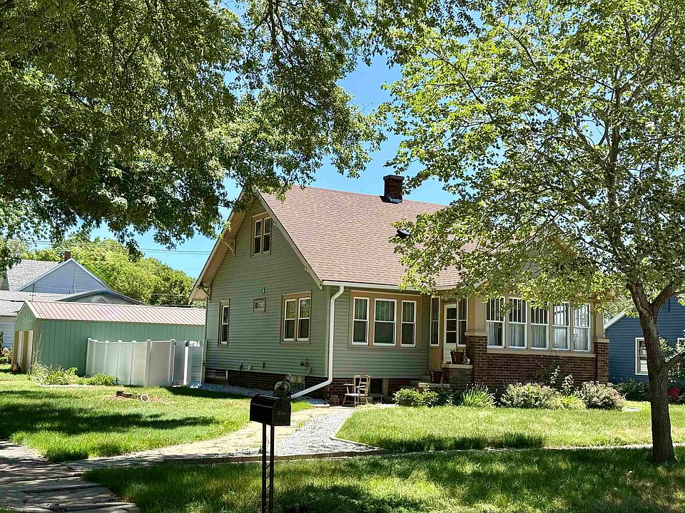 Charming 1.5 story Home on a corner lot with a Cleary Building, & Sun Porch! This beautifully maintained home blends timeless charm with thoughtful upgrades featuring original hardwood floors, classic woodwork, and a warm, inviting layout. Nestled on a spacious corner lot, the property offers 4+ bedrooms, 2 bathrooms, and flexible living space to suit your lifestyle. Enjoy the comfort of a main floor bedroom and bath, along with main floor laundry and an enclosed sun porch which is perfect for morning coffee or extra space year round. Upstairs you'll find two more bedrooms, while the finished basement offers two additional bedrooms plus two bonus rooms ideal for an office, family room, or storage and a 2nd bath. Recent updates include a new roof (2021), Lennox HVAC system (2022) with WiFi thermostat, new basement flooring, fresh interior paint, and updated windows throughout. Step outside to relax on the back deck overlooking the yard enclosed by a vinyl privacy fence. A 24x32 Cleary building provides fantastic space for a workshop, extra storage, or parking. This home combines charm, space, and functionality. Don’t miss your chance to make it yours!