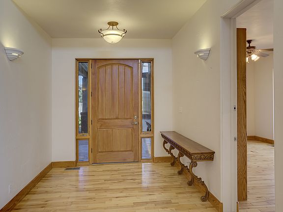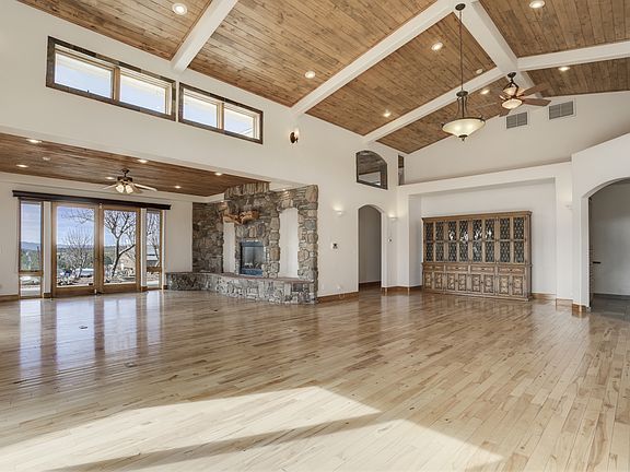 Come home to this grand home with a split floor plan of four Master Suites, each with their own en suite bath and washer/dryer, PLUS office, hobby room, theater room and so much more, located on over 2 acres! This energy efficient home is constructed of insulated litecrete, has solar, geothermal heating/cooling system, a private well and metal roof. The open floor plan features a grand Great Room with wood floors, beamed Tongue & Groove vaulted ceiling, walls of windows to let the outdoors in and a stone wall that artfully encases a fireplace and TV area. Doors to the spacious deck provide plenty of space to enjoy mountain views and nature at its best. The gourmet kitchen is an entertainer's delight with granite counter tops, a breakfast bar with built-in stools, double wall ovens, a gas cooktop and an oversized stainless steel refrigerator. The large 3-car garage has plenty of room for vehicles and forest toys, additionally there is a shed for additional storage and plenty of space for RV parking or to build a barn/corrals on this horse property. Enjoy the produce from the mature fruit trees and for the gardener, there are several raised garden beds ready for planting. In addition to a family home, this home has so many other possibilities and uses ... it would be a great B&B, VRBO, vacation rental, the sky is the limit. Both main level and lower level are handicap accessible. Come see this magnificent property now!
