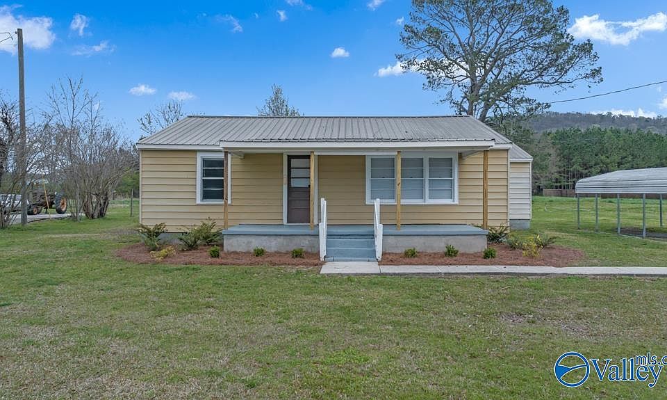Charming 2-bedroom, 1-bath home boasting a spacious living room and eat-in kitchen, perfect for gatherings and relaxation. Discover added versatility with a bonus room which can easily be converted into a third bedroom or office space. Enjoy the convenience of a nice-sized laundry room and a covered front porch ideal for morning coffee or evening unwinding. The property includes a carport and kitchen appliances for added convenience, and is conveniently located to I-65. Utilities are set up on-site for a mobile home although no mobile home is currently present. This inviting residence offers both comfort and potential, making it a must-see for those seeking a cozy yet adaptable living space.