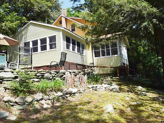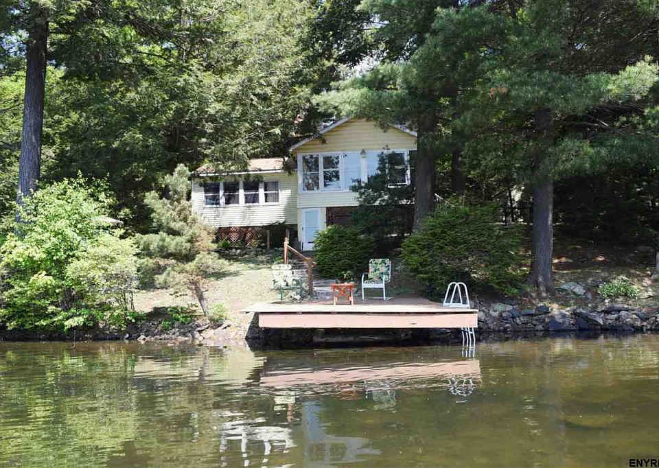 Charming lakefront home w/ the best view on Babcock Lake! Private setting w/ 138 ft lakefront w/dock, 2 car gar plus add'l 1 car gar w/workshop & 2nd floor perfect to finish for guest quarters. Two patios, deck & 4 season porch overlooking the lake. Inside offers 3 BR, 2 full baths, hardwood & carpet over HW, newer well tank. Huge living rm w/ lake view & wood FP. Perfect for year round or seasonal use. 30 miles to Albany & 3.5 hrs to NYC. Optional HOA for beach, etc. Note: Boiler works but older/"as is".