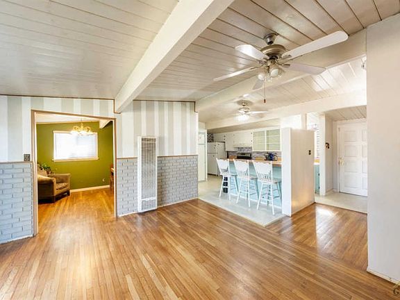 Adorable Bakersfield home! Offering three bedrooms two bathrooms, beautiful hardwood flooring throughout. Living room is comfy and cozy, with a sliding door that leads out into the backyard. Living room also looks into the kitchen, where there's a bar area that has cool blue and white cabinets, and counter top space galore. The dining room is conjoined in between the kitchen and living room area. The bedrooms are roomy and spacious, offering lots of room for activities, play, and sleep overs, with high ceilings and sunny windows that encompass the bedrooms for some beautiful natural lighting. Fans in all of the bedrooms; good size closets that have a shelf inside as well, providing ample space for storage if needed. New windows throughout home. Bathrooms are sunny and bright the windows let the sunshine peek through. LARGE backyard, calls for summer BBQs, with enough room for a small garden, or even a pool! This home is priced to go fast! Don't wait. Call today to schedule a showing!