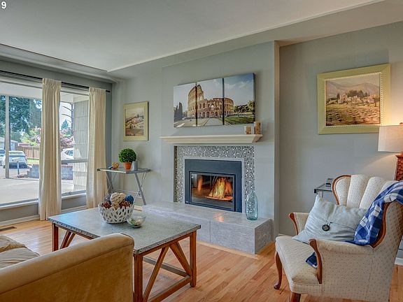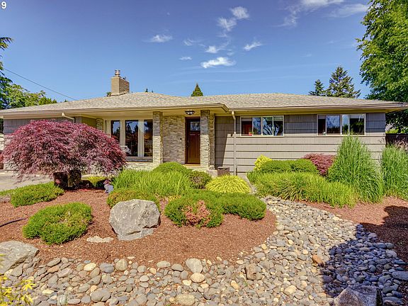 Stunning Mid-Century Modern Remodel on Cul-de-sac. Stone covered front porch. Refinished hardwoods. Remodeled fireplace insert, surround. Gourmet kitchen with slab granite, 5 burner gas range, nook. Three bedrooms, office, and bath and a half on main. Finished lower level with tons of space. Doors, windows, fixtures, and bathrooms updated. New high eff. furnace, w/h, central air. Luxurious fenced private yard w patio. Must see! [Home Energy Score = 7. HES Report at https://rpt.greenbuildingregistry.com/hes/OR10006093]