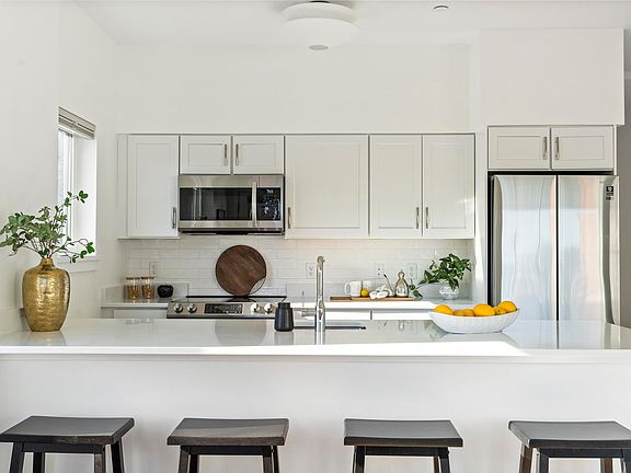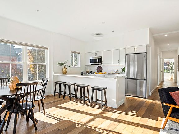 Modern, Minimal, and Right Where You Want to Be. Welcome to 148 Newbury Street #2—an impeccably designed, full-floor condo in Portland's vibrant East End. Situated in the heart of the historic India Street neighborhood and just steps from Casco Bay and the Old Port, this home offers the ultimate in walkable city living. Built in 2022, the unit features nearly 900 square feet of single-level living, 9-foot ceilings, clean lines, smart design, and exceptional natural light throughout. The open kitchen, living, and dining area flows effortlessly, anchored by a large peninsula with seating for four, quartz countertops, high-end appliances, and modern cabinetry. French doors open to a Juliet balcony, creating a subtle yet welcome indoor/outdoor connection. The main living space is bathed in sunlight, and a wall of glass frames picture-perfect views of the historic neighborhood with glimpses of the harbor. With two bedrooms and a sleek, subway-tiled shower, this space offers versatile options for guests, remote work, or comfortable everyday living. Additional features include hardwood floors, in-unit laundry, energy-efficient heat pumps (for both heating and cooling), premium sound insulation, private storage, and rare deeded off-street parking. With a Walk Score of 99, you're just steps from Portland's award-winning restaurants, grocers, coffee shops, and boutiques. This location is also within walking distance of some of Maine's most renowned employers, law firms, and educational institutions—including WEX, Covetrus, Sun Life, Vetro, the Roux Institute, UMaine Law, and more. Looking for adventure? Lace up and hit the Eastern Prom Trail, paddle over to Peaks Island, or drop into one of the many nearby barre, yoga, or Pilates classes. Whether you're searching for a year-round city home or a second space to complement your coastal lifestyle, this condo delivers.