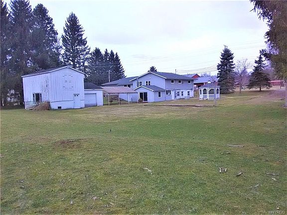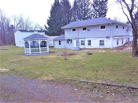Enjoy waterfront living on trout stocked Cattaraugus Creek on the edge of historic Village of Arcade but with all the country amenities. You are welcomed with a huge front porch with solar accents. You have a 2 car attached garage that leads through your utility laundry room. The 1st floor bathroom is amazing with jacuzzi soaker tub, handicap low lip seating shower, and separate vanity. The master bedroom boasts of two double door closets. Newer roof, newer windows, generator, 2nd driveway to 2 car detached garage, The barn has another garage with unfinished loft that could be office or apt. There is a party pavilion perfect for entertaining along with a screened in gazebo with electric ready for hot tub. Walk out basement rec room, with sun kissed FLA RM with wood burning stove +1/2 bath