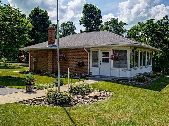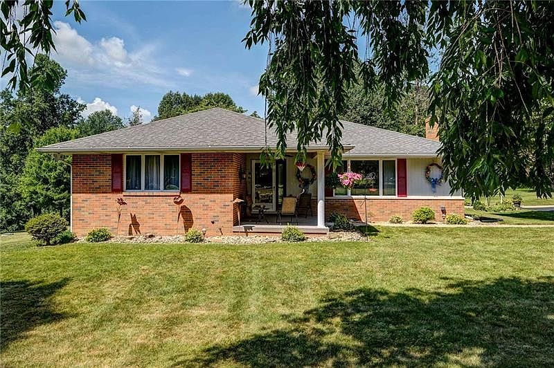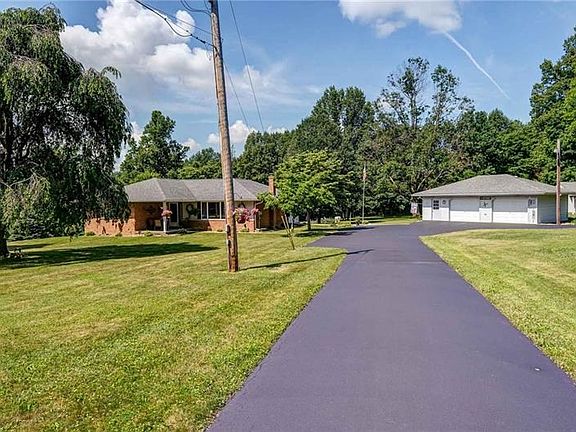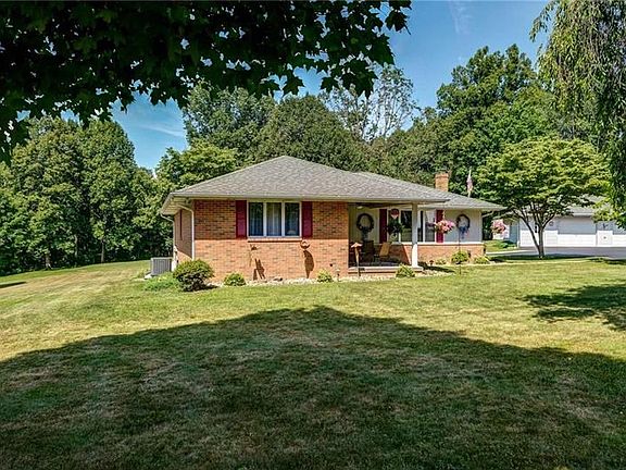 Drive up to this charming ranch that sits on an almost 5 acre park-like setting and you will be greeted by a home that is nestled toward the end of the lane and backing to woods. Enjoy the covered front porch during the warm weather then retreat to the rear sunroom during the cooler months and watch the deer stroll through the yard. The 2 detached garages offer plenty of room to store your toys and vehicles. Plenty of space to entertain friends and family in the large finished basement complete with a wood burning stove and a full bathroom. There is also another room in the basement that could work as a home office or den...plus there is a large craft space adjacent to the light and bright laundry room. Enjoy this tranquil lifestyle that is only 25 minutes to Cranberry Twp and about 15-20 minutes to the turnpike for your travel convenience.